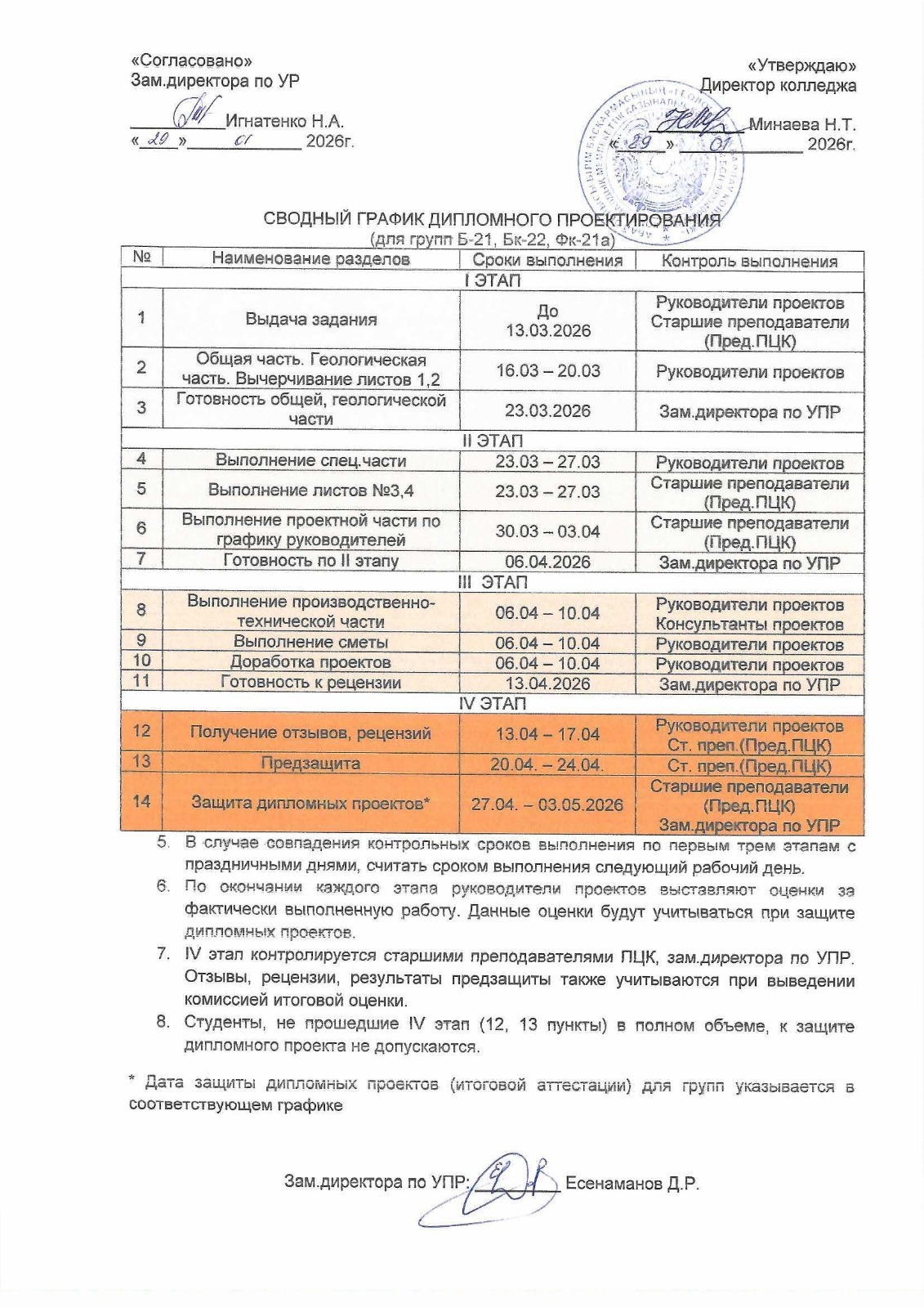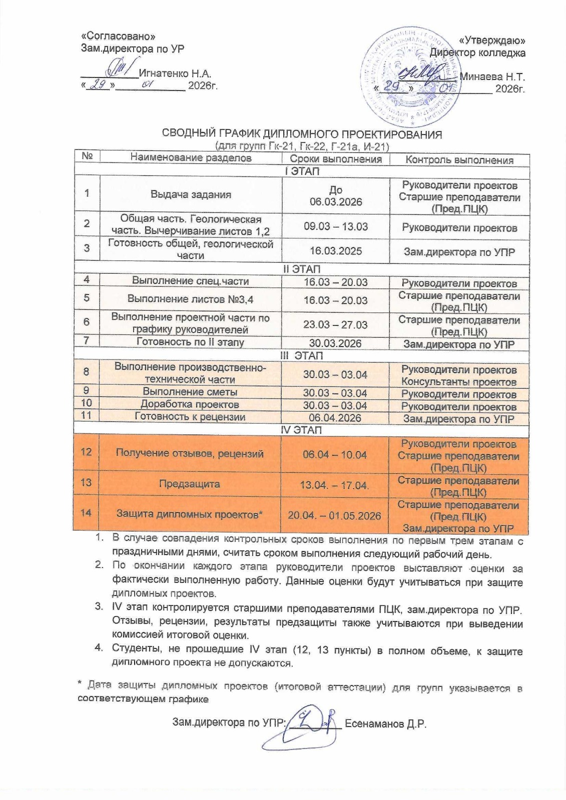 Сводный график дипломного проектирования на 2025-2026 учебный год