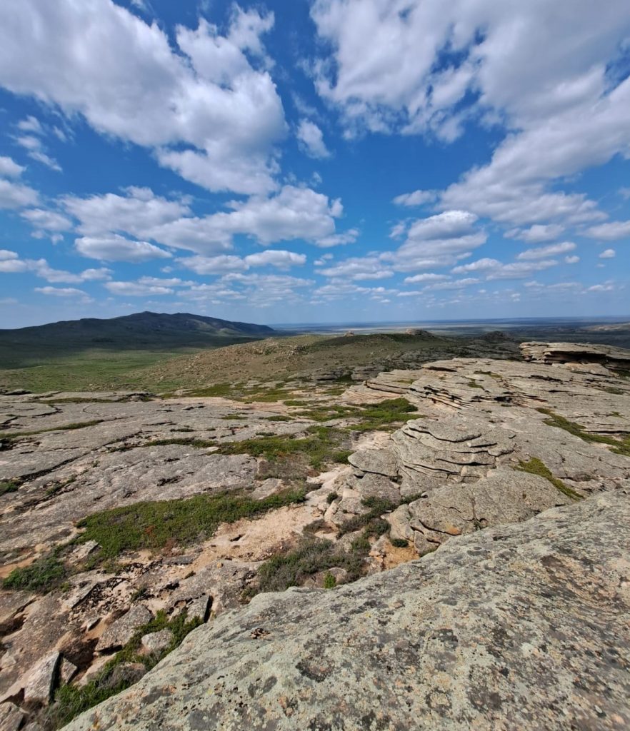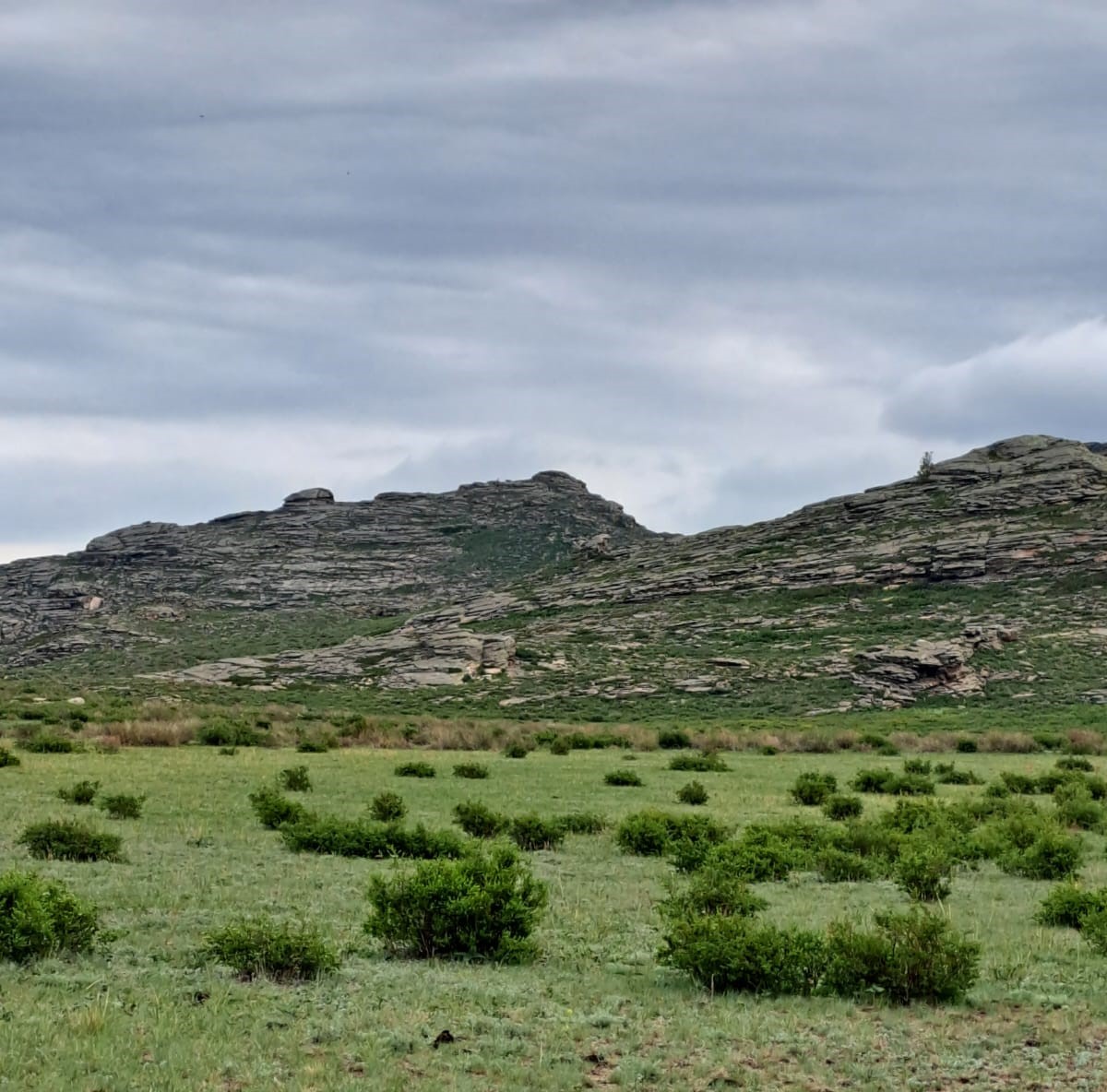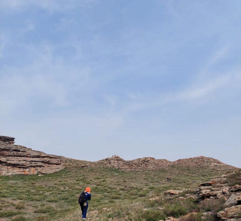 Определение азимутального направления с помощью горного компаса на гору Найзатас при прохождении геологосъемочной практики на массиве Дельбегетей.